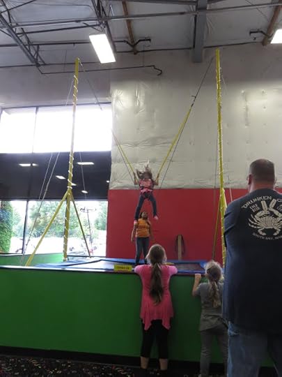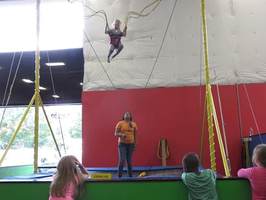 The highlight for both girls, however, was the bungee trampoline. They squealed with delight as they went zooming up toward the ceiling and then plummeted down again.
