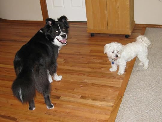 I haven't taken any pictures lately, but I figured when all else fails, show pet photos! So here are a few pictures of our dog Rufus (white), along with our grand-dog Jack (black and white). FYI: Rufus is the boss. He's a mix of Maltese and Bichon Frise; Jack is a mix of Border Collie with a little Chow thrown in (we think!)