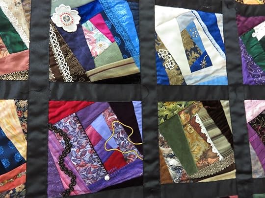 Crazy quilts (like the one pictured below) can include buttons, lace, charms, embroidery, silks, satins, velvets, and just about any embellishment you want. Traditionally, these quilts have been created for show rather than for function and often cannot be washed because of the fabrics used.