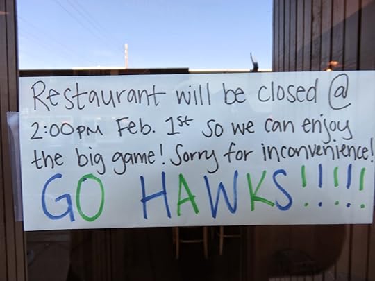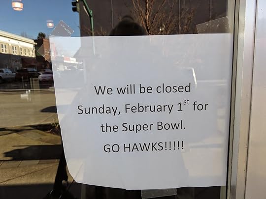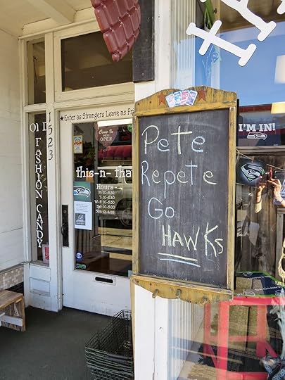 I'm not a football fanatic, but a person would have to be blind to avoid the 12th Man Fever* that has hit the Seattle area! So on a sunshiny Thursday afternoon I thought it would be fun to drive around my part of King County, Washington, to capture images of fan support for the Seattle Seahawks team. I found boosters in some unlikely places! Whether you're rooting for the Hawks or the Patriots (or completely indifferent), I hope you'll appreciate the community spirit I found and that you enjoy the game.