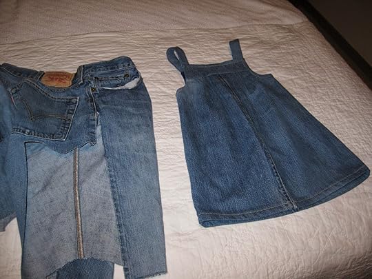 As I'm sure you know, upcycling is the process of giving old items new purpose. I like to do that with clothing. Here are some upcycled outfits I've made for my granddaughter (and one project for my grand-dog). I think it's a fun challenge to see what I can transform into something useful.