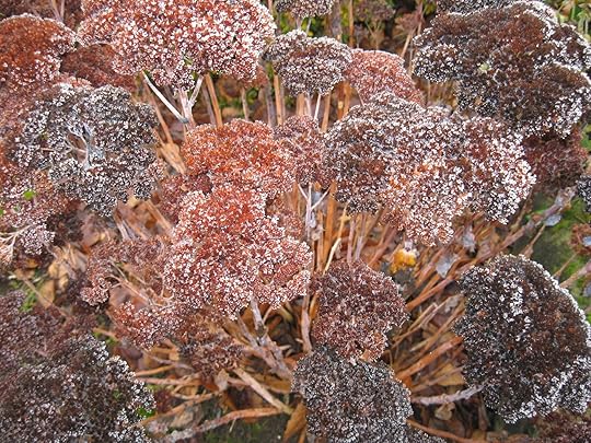 Since I walk our dog Rufus every day, I have a chance to closely observe the seasons in our neighborhood. I love seeing rime on plants! Here are some photos from a chilly day last winter. I'm sure I'll see more ice-coated plants soon. (Click on photos for a closer look.)