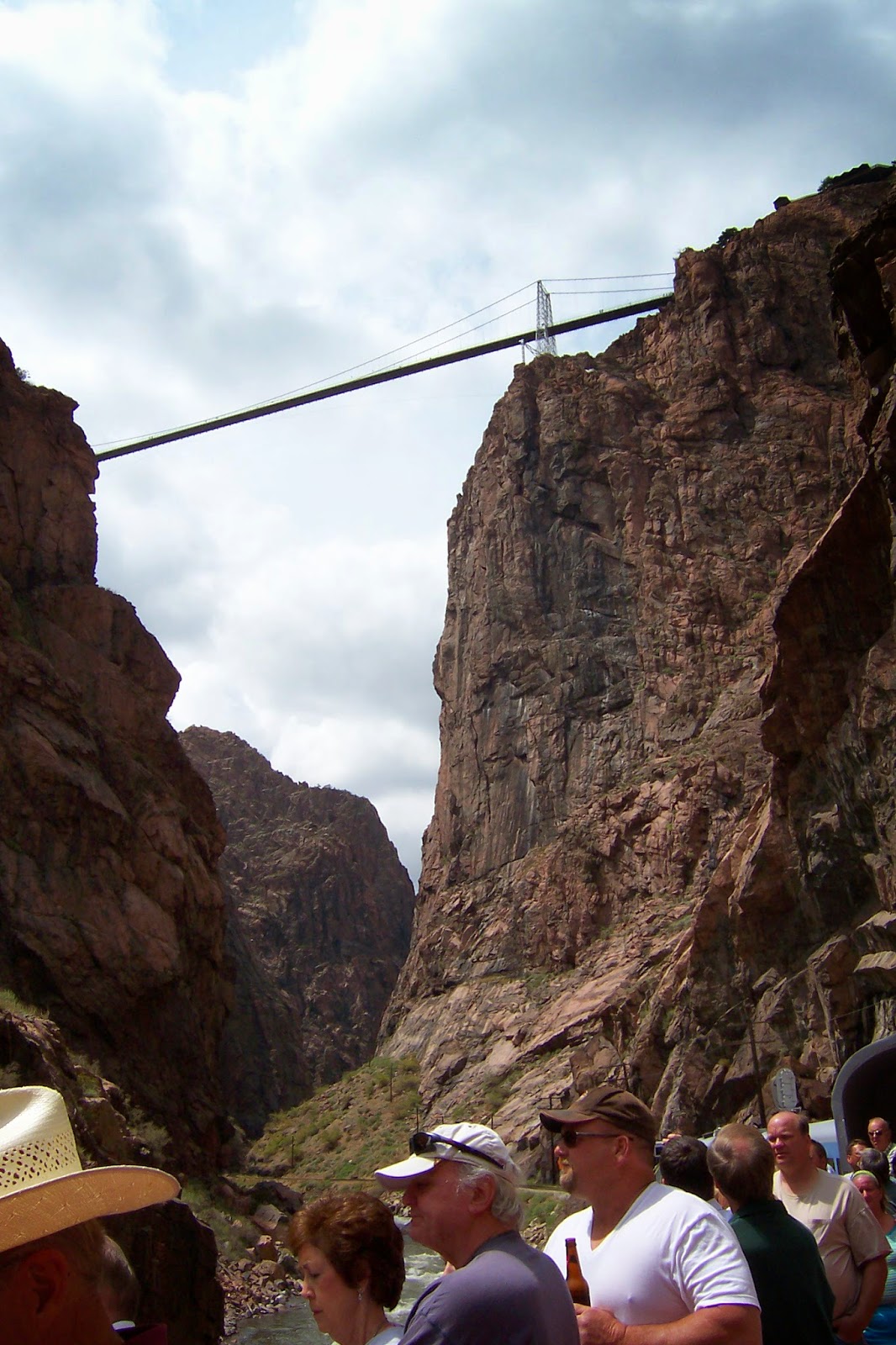 The bridge over the Royal Gorge, Colorado (U.S.) towers 955 feet (291 m) above the Arkansas River. I was happy to be down at ground level, riding a train, instead of up on that bridge!