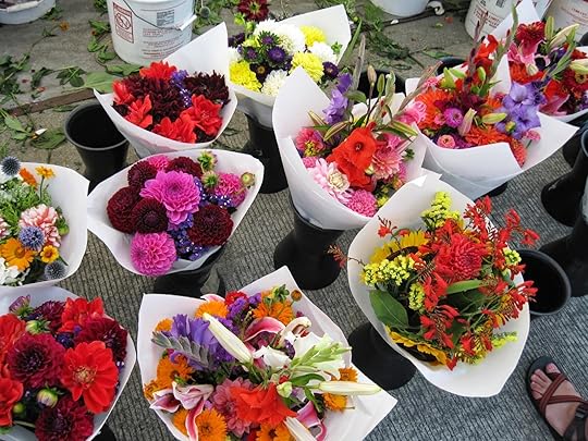 Every Sunday during the summer, my little town of Auburn, Washington, hosts a farmers' market. It's a small set-up--only a couple dozen vendors--but my husband and I have bought some good produce, beautiful flowers, and delicious balsamic vinegar there. Here are a few photos I took in August. (Click on photos to enlarge.)