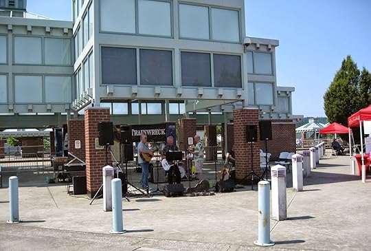 The market is set up at the commuter train terminal.I thought it was strange that the band's name was "Trainwreck."