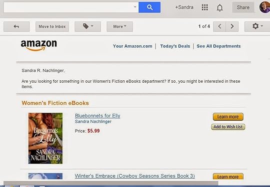 Thank you, mighty Amazon, for featuring BLUEBONNETS FOR ELLY in today's email message. You made my day!