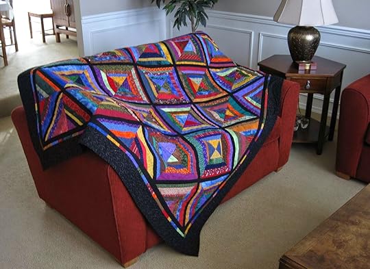 I enjoy several hobbies, but my favorite pastime in recent years has been quilting. So today I'm sharing a couple of my creations. I've given away most of the quilts I've made, but a few are still draped over the backs of chairs or folded at the foot of beds here at home.The quilts shown here were mostly made from scraps - leftovers from other projects. I love the jewel tones in both quilts. By the way, if you also like reading, you might enjoy my recent post about The Friendship Star Quilt (HERE), a novel by Patricia Kiyono and Stephanie Michels.