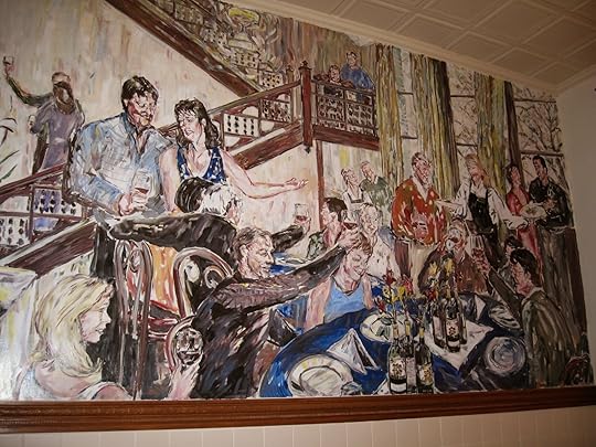 I couldn't resist taking a photo of this muralin the ladies restroom at L'Ecole