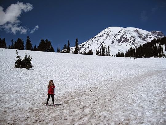Our young guest from Alabama was delighted by all the snow at Paradise.So strange to be playing in snow in shirt-sleeve weather.The Official Mount Rainier National Park Service website says: Paradise is famous for its glorious views and wildflower meadows. When James Longmire's daughter-in-law, Martha, first saw this site, she exclaimed, "Oh, what a paradise!" The park's main visitor center, the new Paradise Jackson Visitor Center, is located in the upper parking area. Paradise is also the prime winter-use area in the park, receiving on average 641 inches (53.4 feet/16.3 meters) of snow a year.