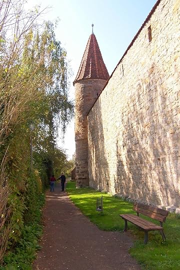 Walking along the perimeter of the town wall.