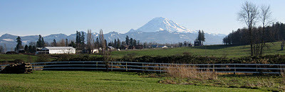 Today my friend Nan and I drove to Enumclaw, a little town in the foothills of the Cascade Mountains, to have lunch. Here's the view we saw along the way. Although I already have dozens of photos of The Mountain, I just had to stop and take a few more because it may be a while before I can say ...