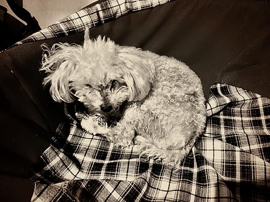 Me conmueve mucho que el perrito me siga a todas partes. Incluso en noches como esta, mientras escucho la canción del desvelo, él va detrás de mí y busca un lugar donde dormir para acompañarme. Quién sabe que demonios ahuyenta con su tenacidad.