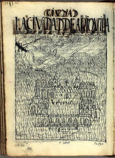 The image above is an artist’s depiction of Arequipa, the city closest to Huaynaputina, showing ash falling on the city following the eruption.