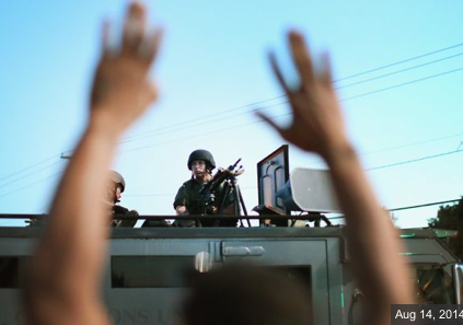 The voice was particularly unsettling, even more so than when I wrote it. And then I realized: it coincided precisely with the voices we were all hearing coming out of our TV sets, emanating from Ferguson, MO, as police officers and other authority figures pushed and prodded and commanded and distrusted and shot rubber bullets and tear gas at those who were gathered to assert their rights as citizens. Those who have for far far too long been regarded as The Other.