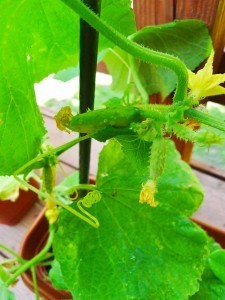 While there are things I’d do differently were I to start my container garden today (put up a net around my blueberry plants, for one, because now I have a blueberry plant sans blueberries–stupid squirrels!), I’m pretty proud of my dinky little plants. Every time I turn around, they’ve grown more and more. I took these photos yesterday–today, that cucumber in the first photo ha...