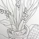 Still life with lilies-of-the-valley, wedgewood pot, and animal skull, in two versions and line weights.