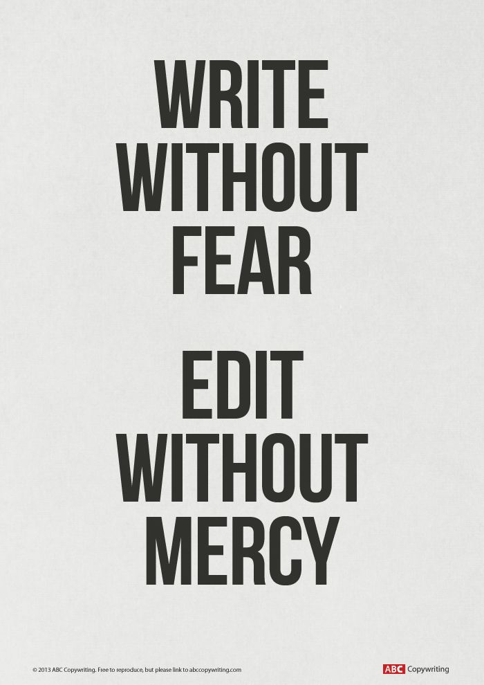 The challenge, then, is learning how not to suck. This comes from fearless experimentation and relentless repetition. Every writing session is a workout, flexing and training your creative muscle so that one day, over time, it becomes toned and refined. Just like going to the gym to train your body, some days you just have to grin and bear it as you write word after inferior word, no matter how frustrated you might be that you’re not quite communicating the message the way you want to. You can’t see the progress because you’re mired down in the swamp of suckatude, wading through the muck every single time you have to write a bunch of crappy paragraphs you just know you’re going to have to whittle down later into something more palatable. And, just like the gym, you’ll discover that the more you flex that muscle, the more confidence you will develop over time. After a month, or six months, or a year, you’ll finally see the progress in your body, turning it into the masterpiece you always knew it could be.