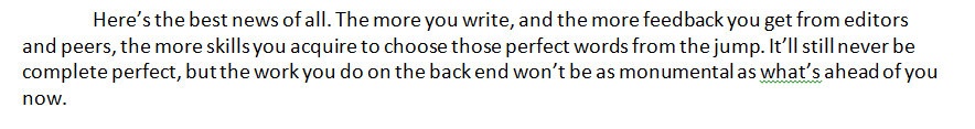Every great book has gone through some sort of editing process, which exists solely to minimize the suckatude. What you hold in your hand is a finished product. It is not where that writer started, not by a long shot.