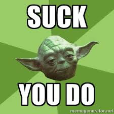 So go forth and suck, my lovelies. Write stinkers of sentences, paragraphs, chapters and books. Line your walls with the page after inadequate page. Let every awkward word mock you from the screen, challenging you–daring you–to work through the crap in order to reach your full potential.