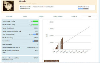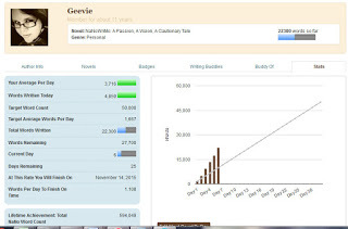 For those of you who are right on schedule, kudos. You’ve resisted every excuse and made writing your priority, getting in your word counts even when circumstances were stacked against you to do that very thing. Life doesn’t skip over you during the month of November simply because you’ve undertaken this challenge. It doesn’t show up on your doorstep, carrying calamity and discord, and then say, “Oops, sorry. I didn’t see you were doing Nano. My bad. I’ll come back later.” You’ve added Nano to your life, and if you’ve managed to keep on track that’s a major accomplishment. You’re on track to be one of a very small percentage of “winners.” Yay, you!