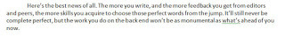 Here’s the thing, though. You have permission to suck. It’s okay. It’s necessary. Once you learn how to separate the wheat from the chaff by doing it on a regular basis, you’re going to suck a whole lot less.