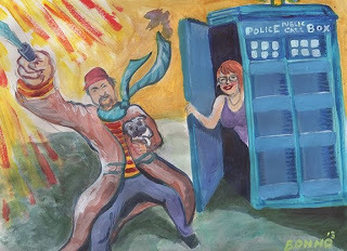 Doctor Who inevitably became a weird kind of cornerstone for our marriage. It is something that I never, ever would have found without Steven, and something he can totally share with me. In a way, he is my Doctor and I am his companion. I even enlisted my wonderful, talented friend Chris Bonno to immortalize us as such to commemorate Steven's 40th birthday.