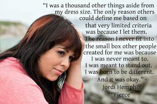Where Jordi and I are alike are our insecurities. But this isn't saying all that much, I think most American women have Jordi's same insecurities. We're designed to, courtesy of the media machine. I've done countless essays about this, but suffice it to say - if you're a woman, you have to look a certain way or fit a certain mold in order to "qualify" for your success and your happiness. Screw standing out... you just want to be accepted.