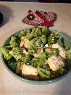 Before I met Jen, I used to eat quite a bit at Slattery's, a nice little eatery with a full bar not too far from where I lived. In fact, Jen and I met at Slattery's, set up by mutual friends of ours. And one of the things I ate there--heck, always ate--was Chicken, Ziti, and Broccoli. I've adapted the recipe a little, and I make it every so often. Jen loves it, and it's pretty filling.