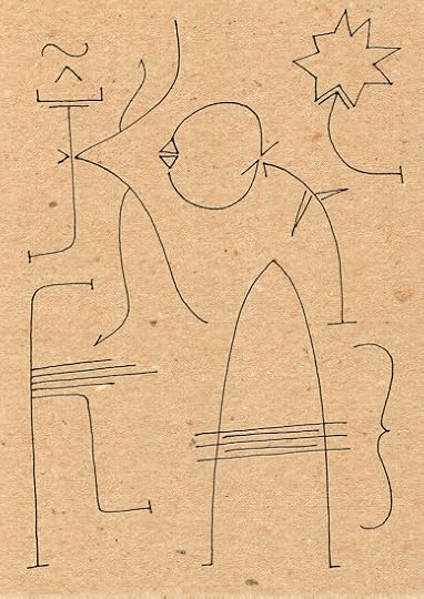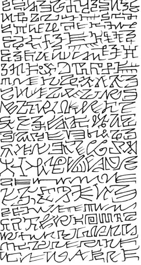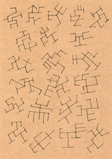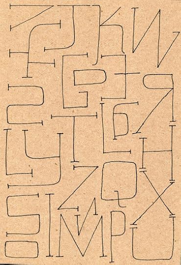 Lines of Thought: Fidgetglyphs , in total, is one of the most intensive texts of asemic writing ever produced. It is stark and modern yet warm and inviting, and is presented beautifully in a fine volume. Many of the art works in the book seem to be simultaneously crawling in and out of the sand, their message evaporating into time. There is a casual divinity, lost in the exchange of insinuation yet ephemerally grappled. The text escapes into subtle color and is archived between the covers, and best of all—it doesn't repeat.