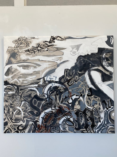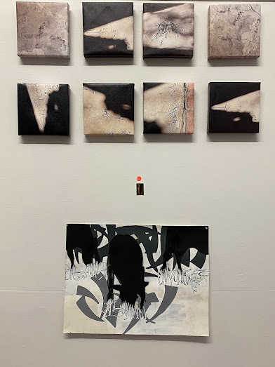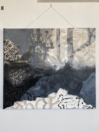 In asemic writing there is a conversation with the reader's eyes. It is up to the author to engage the reader with something that is interesting and inviting but still doesn't let go of the creator's mysterious spirit. Geof knows his intentions and expresses them with sincerity in his work. The abstract calligraphy announces its arrival into history and Huth takes something as simple as a basic scrawl and transforms it into a magnum opus of textual design.