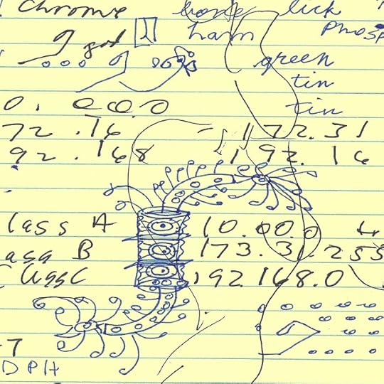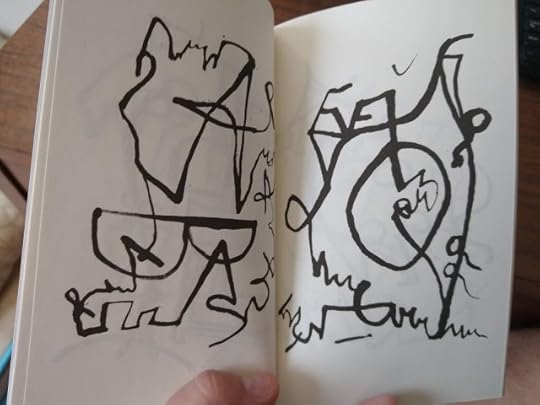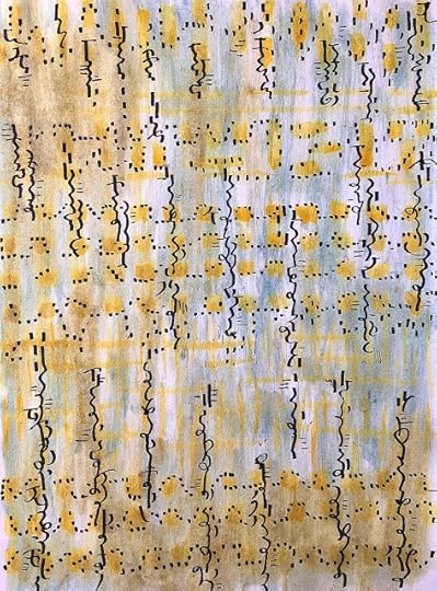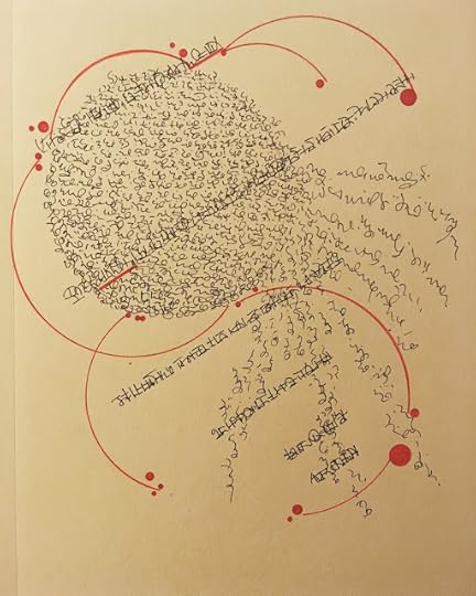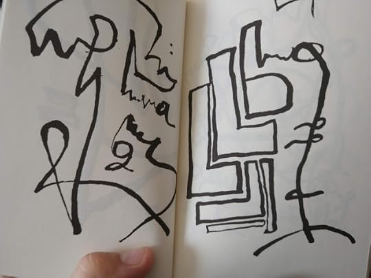 I received some great new books from Paul Hawkins and his Hesterglock Press recently. Among the books was this raw calligraphic gem Durch/Through by Thomas Havlik. "Dada calligraphy" was my first impression upon digging through the pages of the book. Then once I ventured farther in, the gestures in the work seemed to exorcise out the art spirit(s) dwelling on the paginal cave walls. The lines of writing at first come across as simple childlike gestures, but then they give way into a powerful compendium of rough soul scripts. I like that this book of calligraphic writing allows me to find something new or forgotten along the journey as I travel among the leaves. The asemic or asemantic writing of Durch/Through gives the illusion of change but remains static as a foundation for thoughts and creativity, and only evolves in the reader's mind as intuitive glances into the totality of human experience/trauma. This book returns to the origins of writing, but it also successfully dwells in early 21st century Internet scribbling culture currently everywhere on and offline. Letters are teeth that we use to eat life; in Durch/Through the slightly legible letters and coarse lines are masticating thousands of years of human literary endeavor and leaving nothing but honey.
