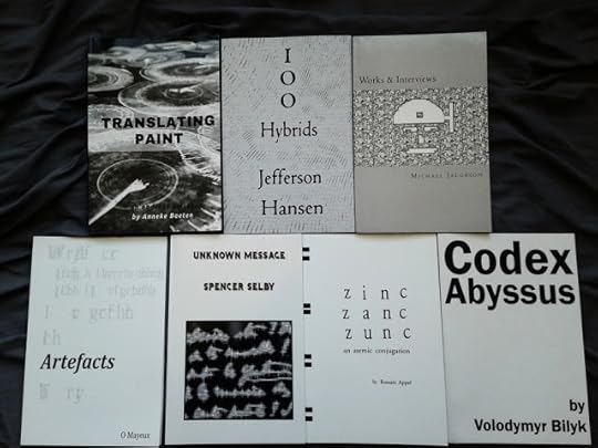 words and asemic writing unite to tell a story of balance between the human hand and modern technology. Asemic writing depends on the internet for asemic cultural diffusion of calligraphic scribal artifacts, and Jefferson's work is a futuristic look into the potentiality of handwriting. It captures the asemic/verbal poetry of the techno-evolutionary now more than any other book I have read, and holds its place well in the online/offline tension of modern society by way of Jefferson's dry rolling humor. Some of the poems in this book break free with asemic calligraphic elation, and others are closed in on by the asemic author's hunt for meaning in a surveillance society. All in all it's a strong work of mental awareness for the current poetic condition.