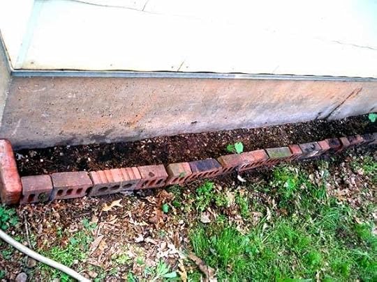Monday: I moved bricks around the property tomake a Hollyhock and Sunflower bed.