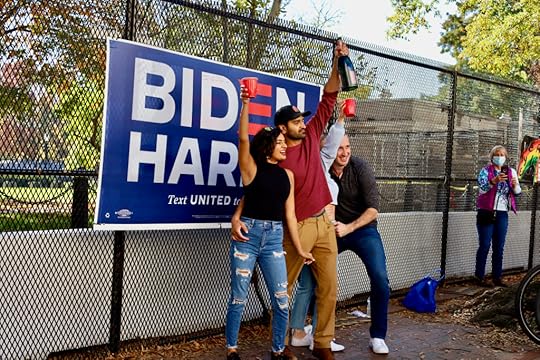 This was the day that the networks announced that Biden had won. Within minutes, Black Lives Matter Plaza was packed with celebrants cheering, singing and drinking champagne. People danced on the spot where Trump had protesters beaten for a photo-op. “We are the champions,” echoed down H St.