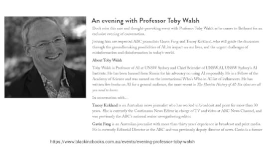 Toby Walsh ~ Talk, on AI ~ (21st Nov 02025)