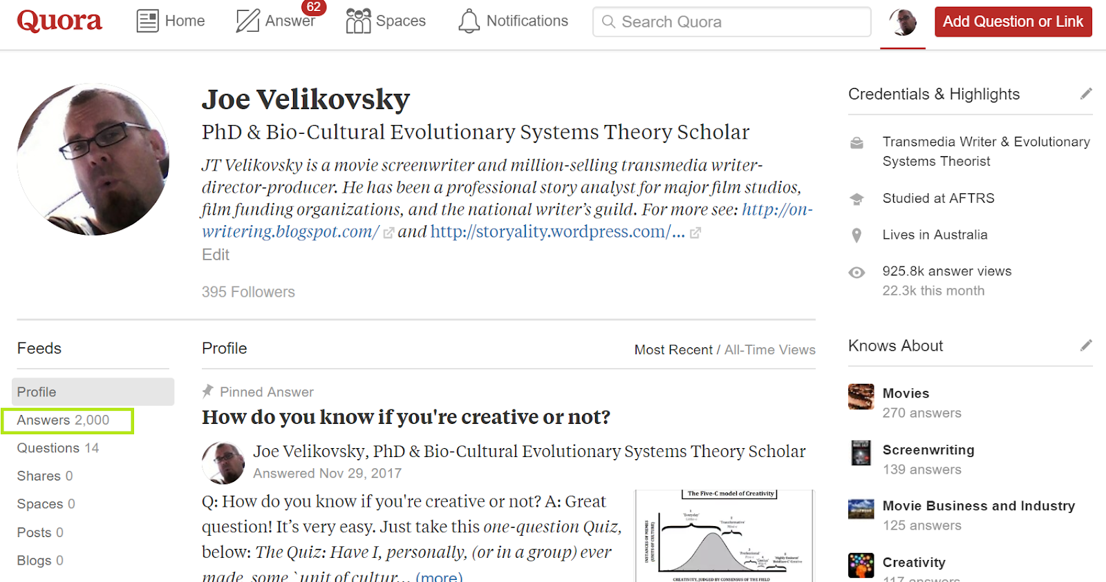 On Creativity:StoryAlity #6 – What is Creativity and How Does It Work?StoryAlity #6B – Flow Theory, Creativity and Happiness StoryAlity #7 – On “the 10-Year Rule” and Creativity StoryAlity #8 – More on the 10-Year Rule” and Creativity StoryAlity #8B – On the 10-year-rule and creativity in Standup ComedyStoryAlity #9 – How To Be More CreativeStoryAlity #9B – Creativity in Science (and – The Arts, and Film)StoryAlity #10 – About The Creative PersonalityStoryAlity #11 – Wallas and the Creative ProcessStoryAlity #12 – Combining Practice Theory – and the Systems Model of CreativityStoryAlity #13- Creativity and Solved Domain ProblemsStoryAlity #13B – Creativity, Cinema, Stanley Kubrick & GeniusStoryAlity #14 – On some Romantic myths of CreativityStoryAlity #14B – Creativity – the missing link between “The Two Cultures”StoryAlity #14C – Two Crucial American Psychological Association speeches: J P Guilford (1950) and D T Campbell (1975).StoryAlity #141 – The StoryAlity-Theory `Robo-Raconteur’ artificial-writer