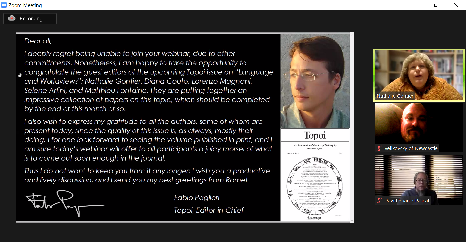 Webinar #11 (November 19th 02021)* Featured papers of the special issue on Language & Worldviews for Topoi.