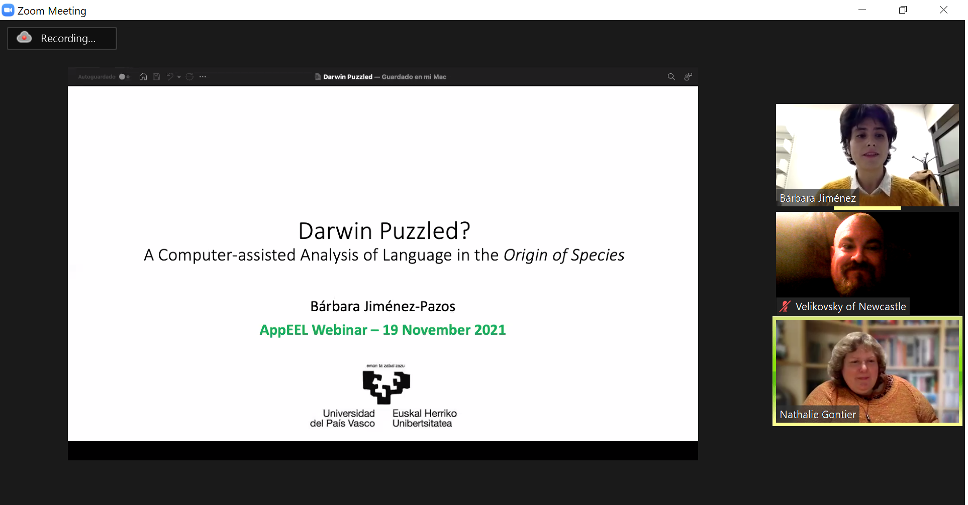 * Bárbara Jiménez Pazos on Darwin Puzzled? A Computer-assisted Analysis of Language in the Origin of Species