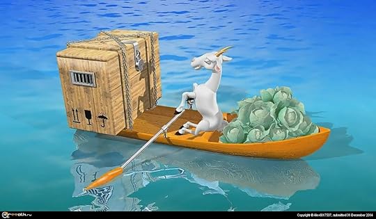 Эта задача придумана в раннем средневековье. Фермеру надо переправить волка, козу и капусту - с левого на правый берег реки. У фермера есть лодка, в которую (кроме фермера) помещается лишь что-то одно: или волк, или коза, или капуста. При этом: если фермер оставит на каком-либо берегу без присмотра волка с козой, или козу с капустой, то что-то будет съедено.