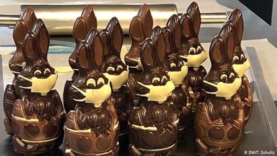 ...Не только немецким производителям пришла идея выпустить шоколадных зайцев в защитных масках. Эти зайцы, к примеру, сделаны в Бельгии, хотя и продаются в Германии"*