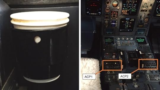 Командир поставил чашку на откидной столик, с которого она и была опрокинута. Большая часть кофе попала на колени командира, но оставшееся пролилось на приборную панель.