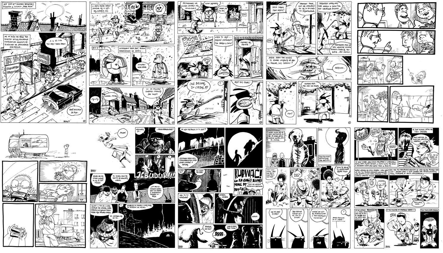 Cztery plansze z Osiedla Swoboda, cztery plansze z Biegunki, dwie plansze z drugiego tomu Na szybko spisane, wszystkie aukcje od zetki. Zainteresowanych zapraszam!