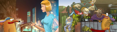 . To film, zrobiony przez fachowców pokolenia, które doskonale wie co na świecie plastycznie piszczy. Dzięki temu nasze oczy co chwilę atakują kipiące od szczegółów, stylowo pociśnięte, świetnie oświetlone tła i dziesiątki, całe dziesiątki cudownie pokracznych postaci (choćby na ekranie pojawiały się tylko na sekundę). Krajanom, którym rysunkowo wystarczy okładka zeszytu w kratkę z różowym kotkiem na śmigniętym gradientem tle, zawierającym wszystkie pieprzone kolory tęczy, twórcy filmu szykują estetyczną rewoltę, która nazywa się z prosta profesjonalizmem.