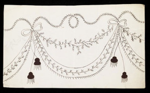 In 1973, a set of well-used embroidery patterns from the 1780s was donated to the Victoria and Albert Museum. Clearly they’re the work of a professional pattern-drawer and gifted artist, and just the thought of stitching one of those beautiful, detailed designs onto thin muslin gives me the quakes. Here’s a link if you’d like to see more.