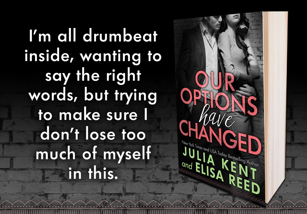 Our Options Have Changed is a full-length standalone contemporary romance, the first in the On Hold series by New York Times and USA Today bestselling author Julia Kent and journalist-turned-fiction-writer Elisa Reed. It is a loose spinoff from Julia Kent’s Shopping for a Billionaire series, with cameo appearances from favorite characters.
