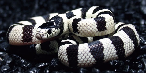 << Albino Ball Python… the Albino Boa looked like this but bigger! Much biggerTwo years ago, a new “Critter Guy” came to visit my class. This one brought in a frog, birds, and yes…a snake. This one was a California King Snake. It was black and white striped and much smaller than the boa. I vowed to be brave this time…if my kindergartners could pet it, so could I. So I touched it, then “Mr. Critter Guy” got funny…He put it around my neck. How I ended up from petting with one finger to having the snake around my neck and holding his head away from mine….I’ll never know. Although, “The Critter Guy” assured me that he wouldn’t bite and showed me by sticking his own hands in the snake’s face and mouth area.