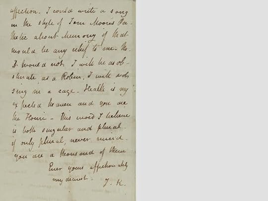 I'm having a Keats moment. He seems to be appearing everywhere. This is from a letter to his beloved, Fanny Brawne. He did not get his expected heaven, at least not in his life - perhaps on the other side.