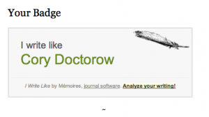 I write like Cory Doctorow. Funny thing is, I took two completely different pieces of writing (one magazine...