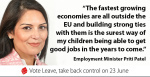 Our children can grow up safe and secure in thy knowledge that we are part of the EU which has helped guarantee peace in Europe since the Treaty of Rome in 1957.