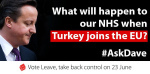 A fear of continued mass immigration was one of the most powerful projections of the campaign, especially from countries such as Turkey which the campaigners implied was imminently about to join the EU. Such immigration was primarily seen as being damaging to employment and the NHS.